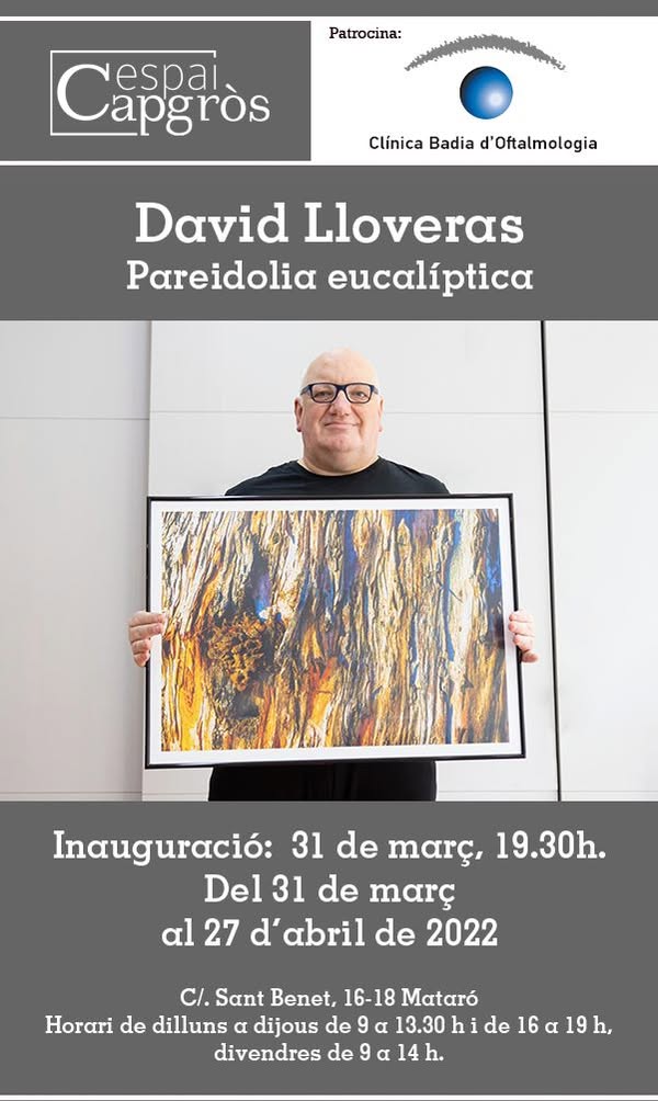El 31 de marzo de 2022 se inauguró la exposición «Pareidolia eucalíptica» en el Espai Capgròs de Mataró. El acto contó con la presentación de Antoni Luis, entonces presidente de la Associació Sant Lluc per l’Art de Mataró, quien destacó la capacidad de la muestra para revelar formas ocultas en la naturaleza y transformar la percepción del espectador.
